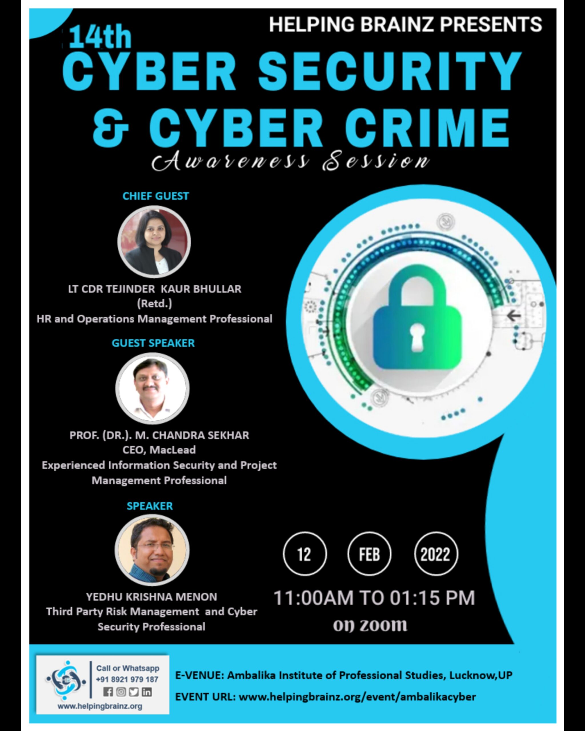 The event focuses on sharing insights about, cybercrimes, cyber attackers, threat actors, statistics, case studies, prevention mechanisms, cyber laws and on how to report a cyber crime.